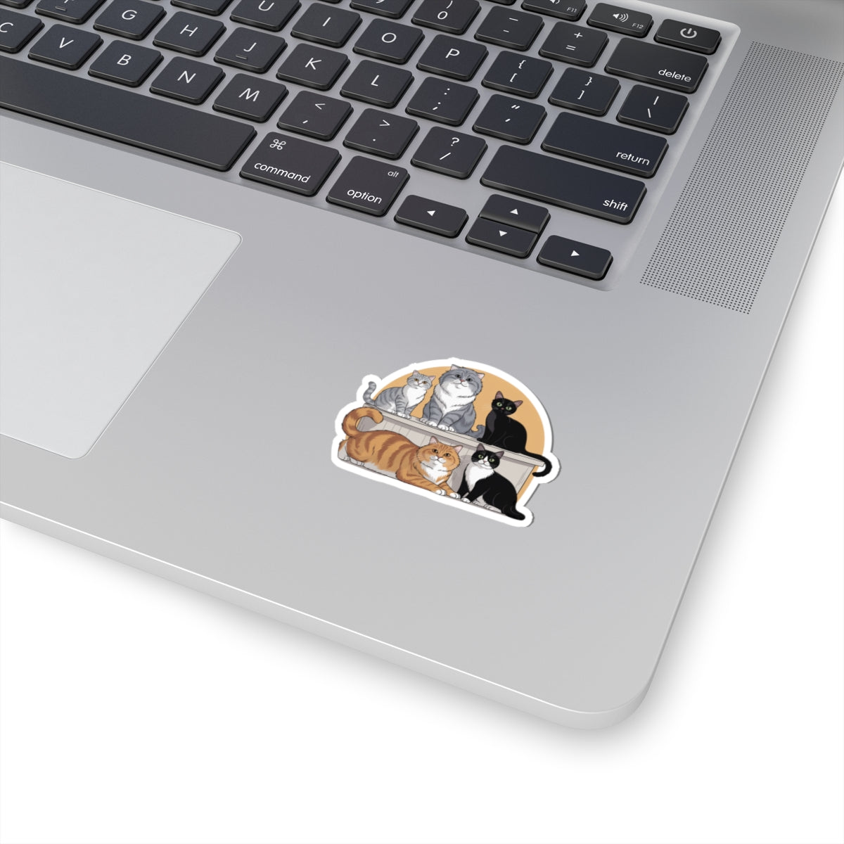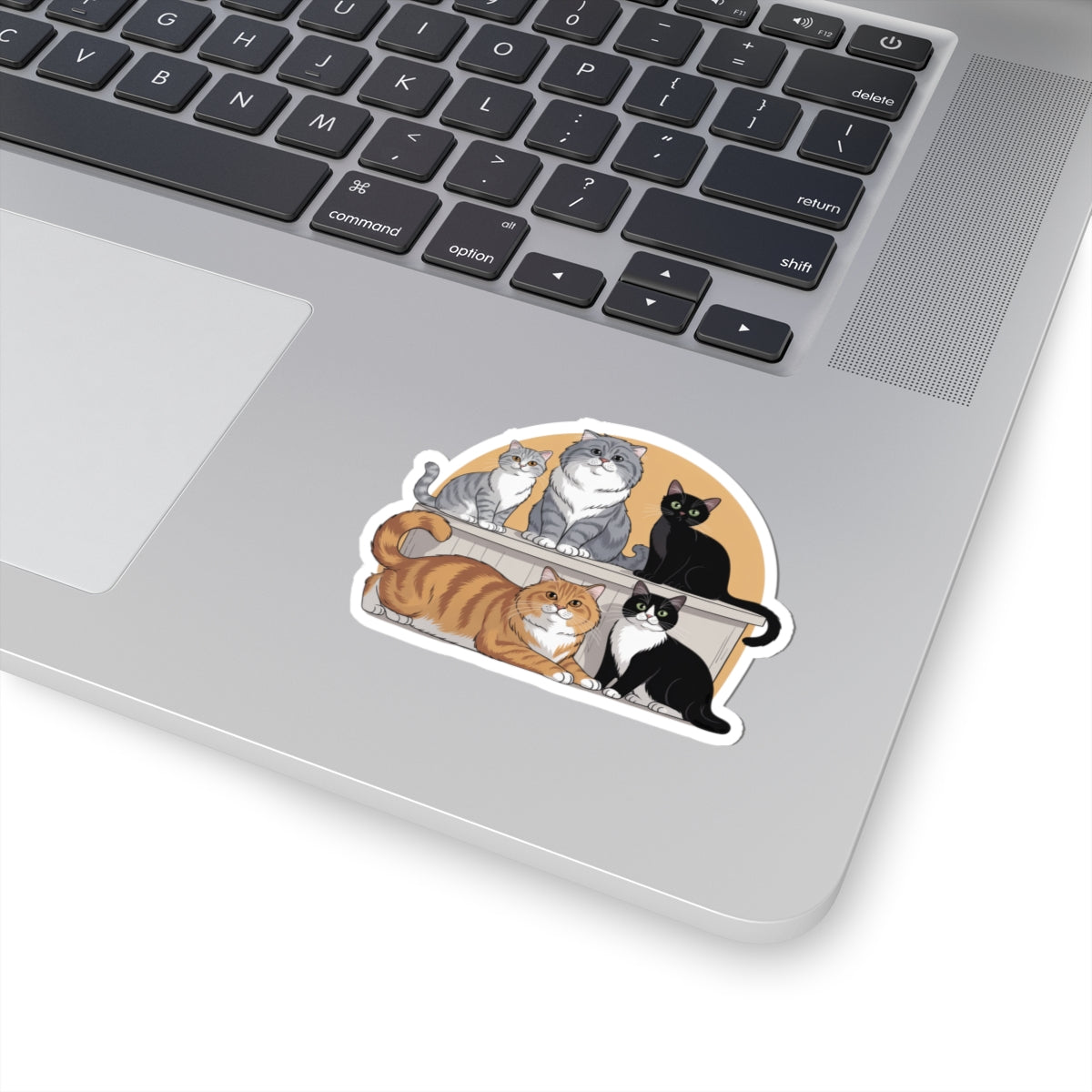 Flaunt your feline friend group wherever you go! This premium die-cut decal features five charismatic kitties—ginger, tuxedo, sleek black and two plush grays—lined up under a warm sunset arch.