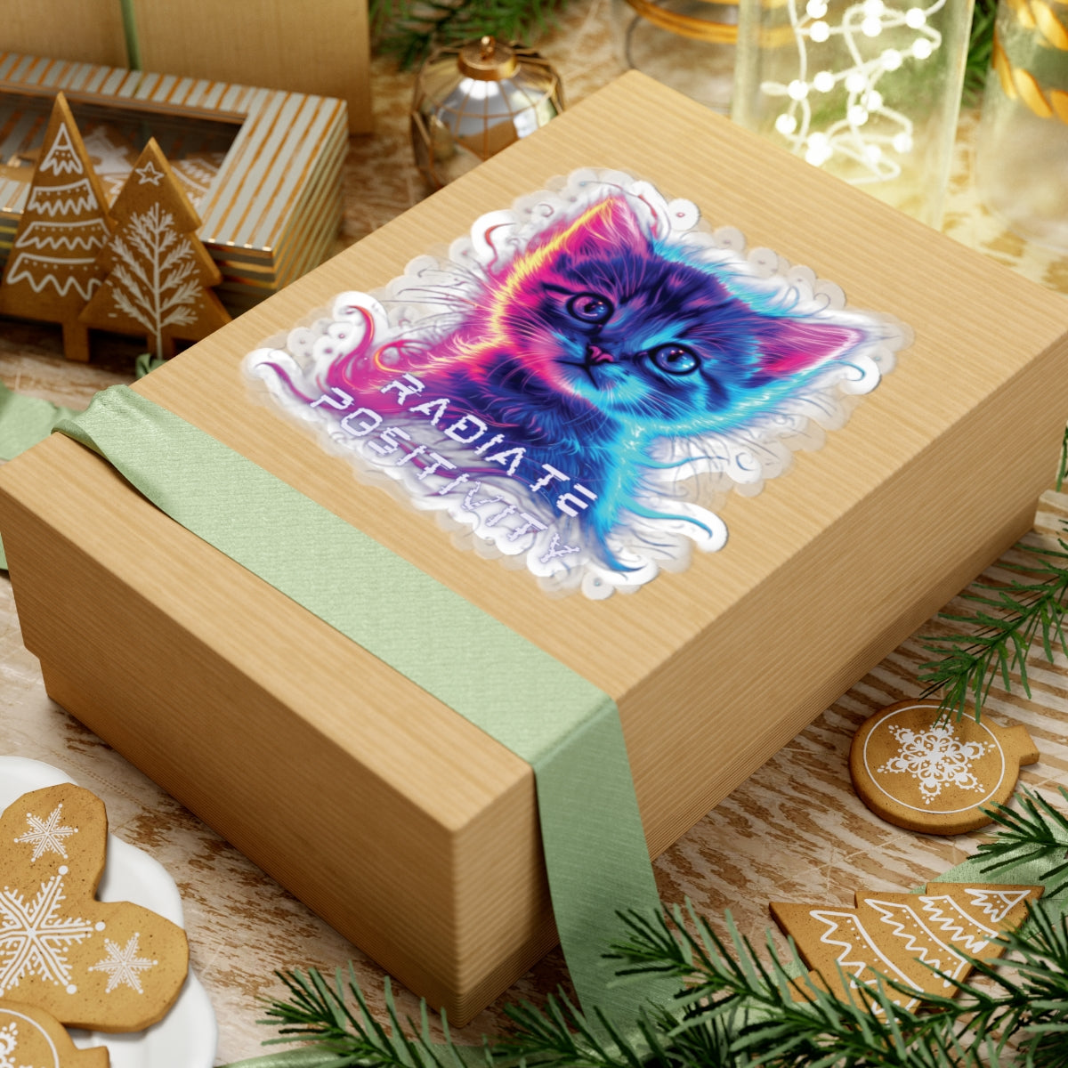 Radiate Positivity Cat Stickers | Cute Cat Art, Laptop Decal, Positive Vibes, Gift for Cat Lovers, Room Decor